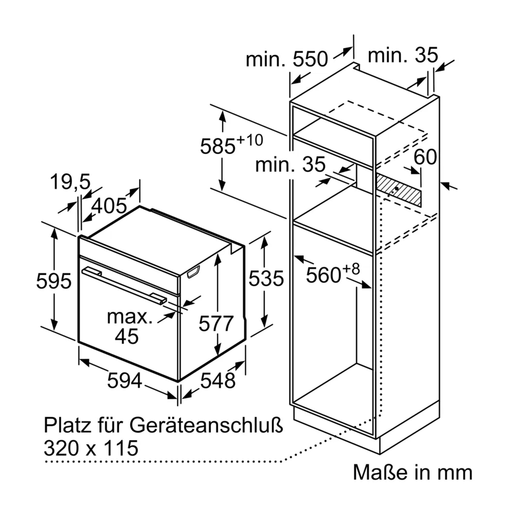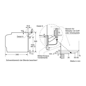 Lò nướng kèm hấp Siemens HS736G3B1 có kiểu lắp đặt âm tủ. Do đó, người dùng nên tham khảo và lắp đặt theo thông số sản phẩm mà nhà sản xuất khuyến nghị.
