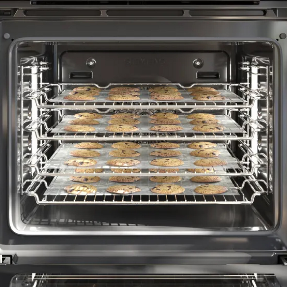 Siemens HS736G3B1 iQ700 âm tủ sử dụng hệ thống nhiệt đối lưu 4D hotair. Hệ thống này được trang bị bộ phận quạt cải tiến, có khả năng phân phối nhiệt nhanh chóng, mạnh mẽ và đồng đều khắp các vị trí bên trong lò nướng. Vì thế, thực phẩm bên trong lò được chín đều và cho màu đẹp mắt hoàn hảo.